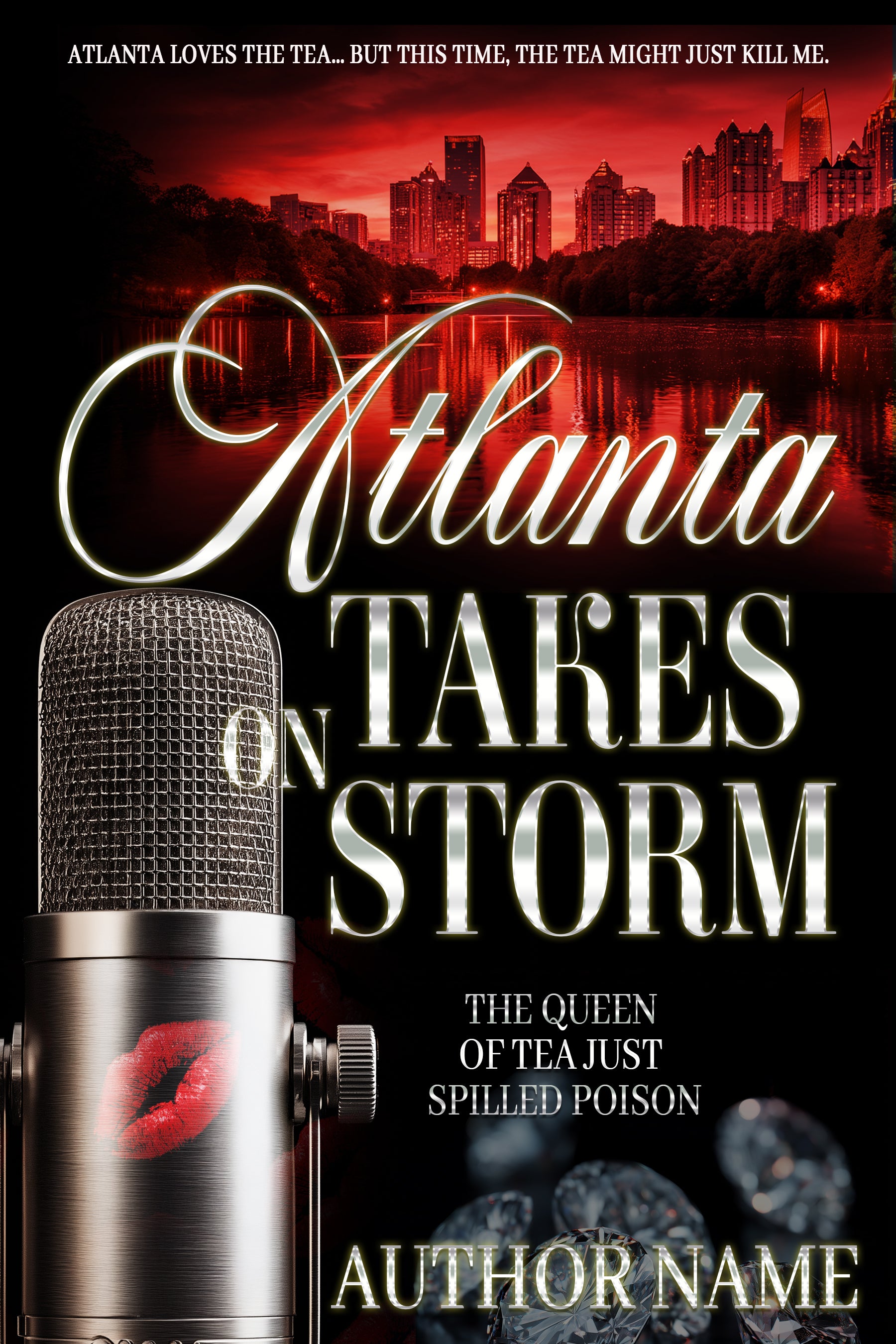 Turn heads with this bold and dramatic premade cover design. Featuring the glowing Atlanta skyline at sunset, a sultry microphone kissed with lipstick, and luxury diamond accents, this cover screams gossip, danger, and urban drama. Perfect for urban fiction, street lit, romance drama, or podcast-themed thrillers, it delivers instant intrigue and market-ready appeal.
